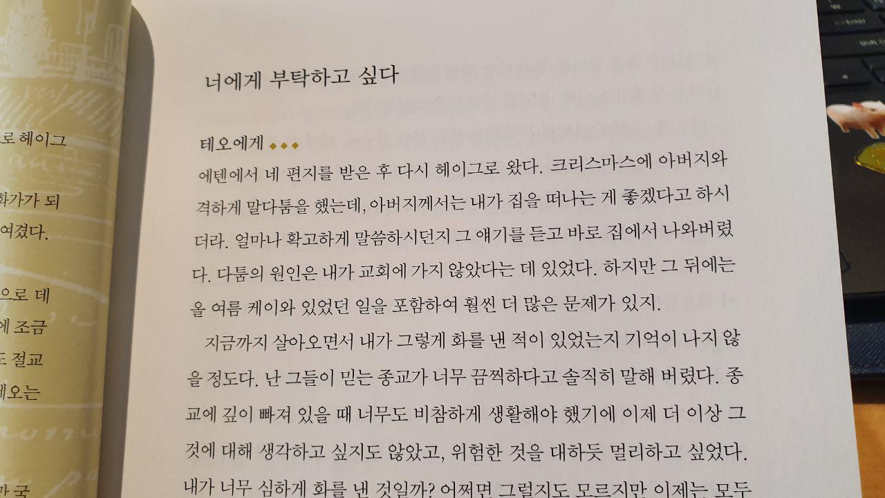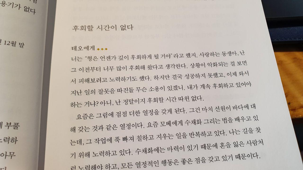 뭔가 불행했던 화가에 초점이 아니라 인간 빈센트가 어떻게 성장하고 어떤 과정을 거치면서 살아갔을까를 보게 한다. 자신에게 다가온 현실들을 다시 바라보고 또 피드백하고 스스로에게 적용하는 과정을 꾸준히 보게 된다. 어쩌면 제목처럼 그의 영혼을 볼 수 있는 편지가 아니였을까. 그의 편지는 자신의 부족함을 드러내는 것을 두려워하지 않는다. 오히려 자신이 그림을 지속할 수 없고, 이 생활을 지속할 수 없다는 그 삶을 두려워한다. 누군가에게 도움을 요청하는 것을 두려워하지 않으면서 자신이 가는 길을 멈추지 않겠다는 의지를 보여준다. 이 책을 읽고 보니, 빈센트가 더 매력적인 사람으로 다가왔다. 쉽지 않은 길을 가며 가장 고흐다움으로 살아가기 위해 노력했던, 그러다보니 테오도 형을 지지하고 나아갔던 게 아닐까라는 생각말이다. 삶의 마지막까지 그림에 대한 생각을 놓치지 않았던 그의 마음에 다시금 존경을 표해본다.