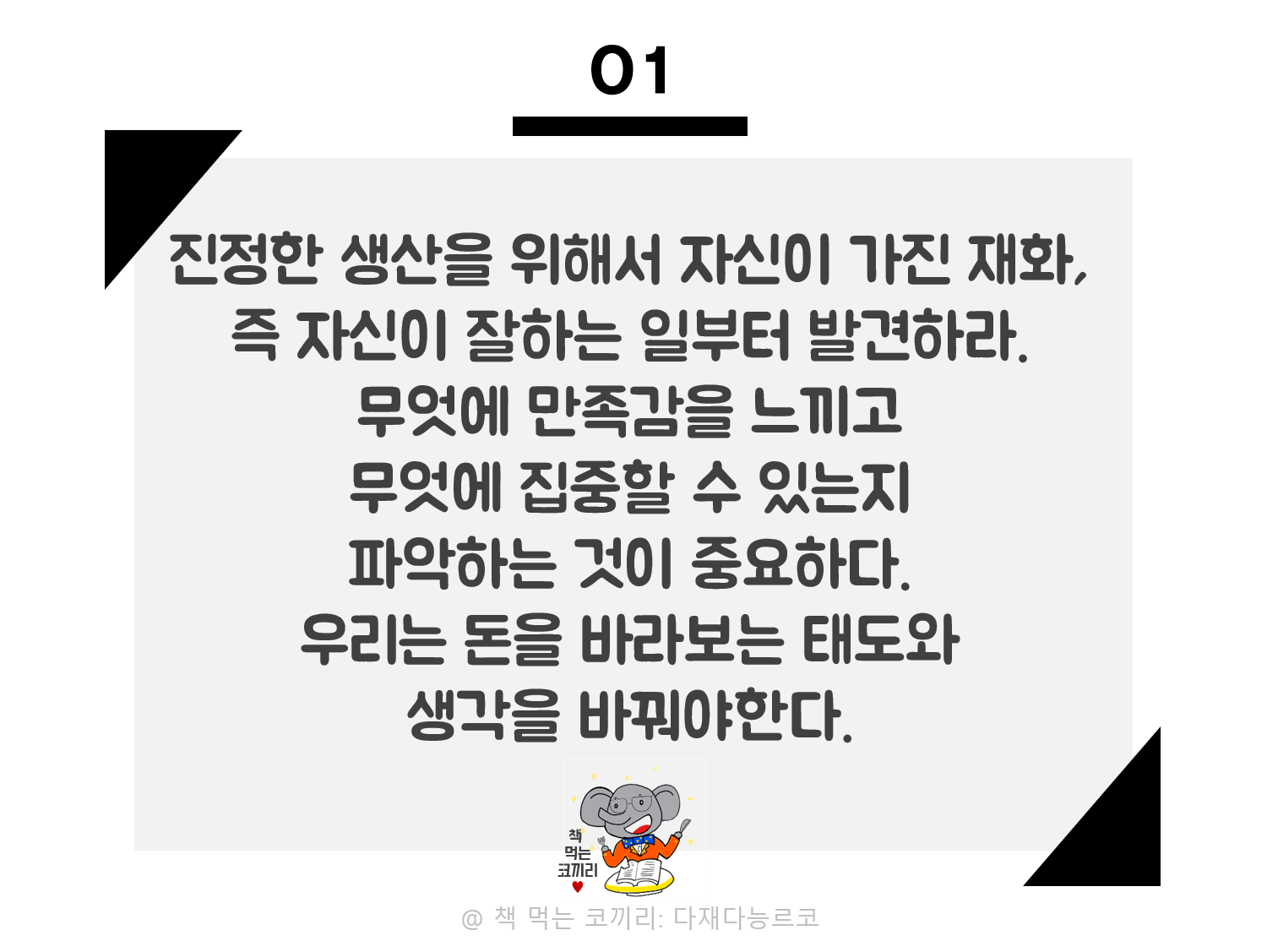 게다가 경제에 대해서 전혀 아는 지식이 없다하더라도, 일단 책을 읽는 이로 하여금 현재의 나의 상태를 인지하고 돌아보게 한다. 과연 무엇이 기초이고, 무엇을 먼저 하는 게 옳은지 그저 주변에서 말하는 여러가지 말에 휘둘리는 것이 아니라 진짜로 나의 가치와 기준을 가져야함을 직면하게 한다. 14명의 전문가들이 독자들에게 던져주는 인사이트들이 모두에게 적합하진 않을 수 있다. 하지만 그저 가짜뉴스에 휘둘리며 다양한 가치관을 바라보지 못하는 것보다 실생활에 필요한 내용들을 통해서 내가 그동안 보지 못한 정보들을 보면서 한번 더 내 삶에 대한 생각들을 해본다. 자본주의의 기본적 원칙들이 시대가 지나감에 따라 달라진다. 돈을 버는 플랫폼도 방법도 다양해지고 있다. 이때에도 여전히 IMF를 이겨냈을 때의 정신만 가진다고 우리의 삶이 달라지진 않을 것이다. 기본적으로 우리가 경제를 바라보는 태도와 생각이 바뀌어야하지 않을까라는 생각을 하게 한다.