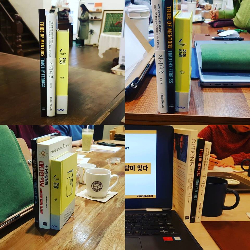 비슷한 고민을 가진 사람들이기에 모이면 즐거움도 두배, 행복함도 두배입니다. 다들 기회라고 생각해서 모이게 되었기에 우연한 만남들이 이렇게 서로 독려해주는 시간이 될줄 몰랐다고 하더라구요. 책을 하나씩 가져가서 이야기를 해주기에 다들 더 재미있어 하더라구요.