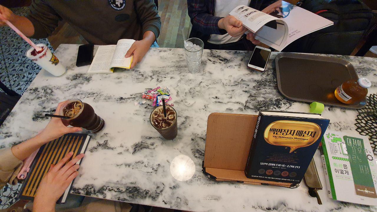 우분투북스에서 책구경하느라 시간을 보내고, 근처 카페에 가서 독서모임을 했습니다 :) 30분간 독서를 하고 각 책에 대해서 서로 이야기를 주고 받았는데요. 좋은 책들이 많아서 시간이 참 풍성했네요.