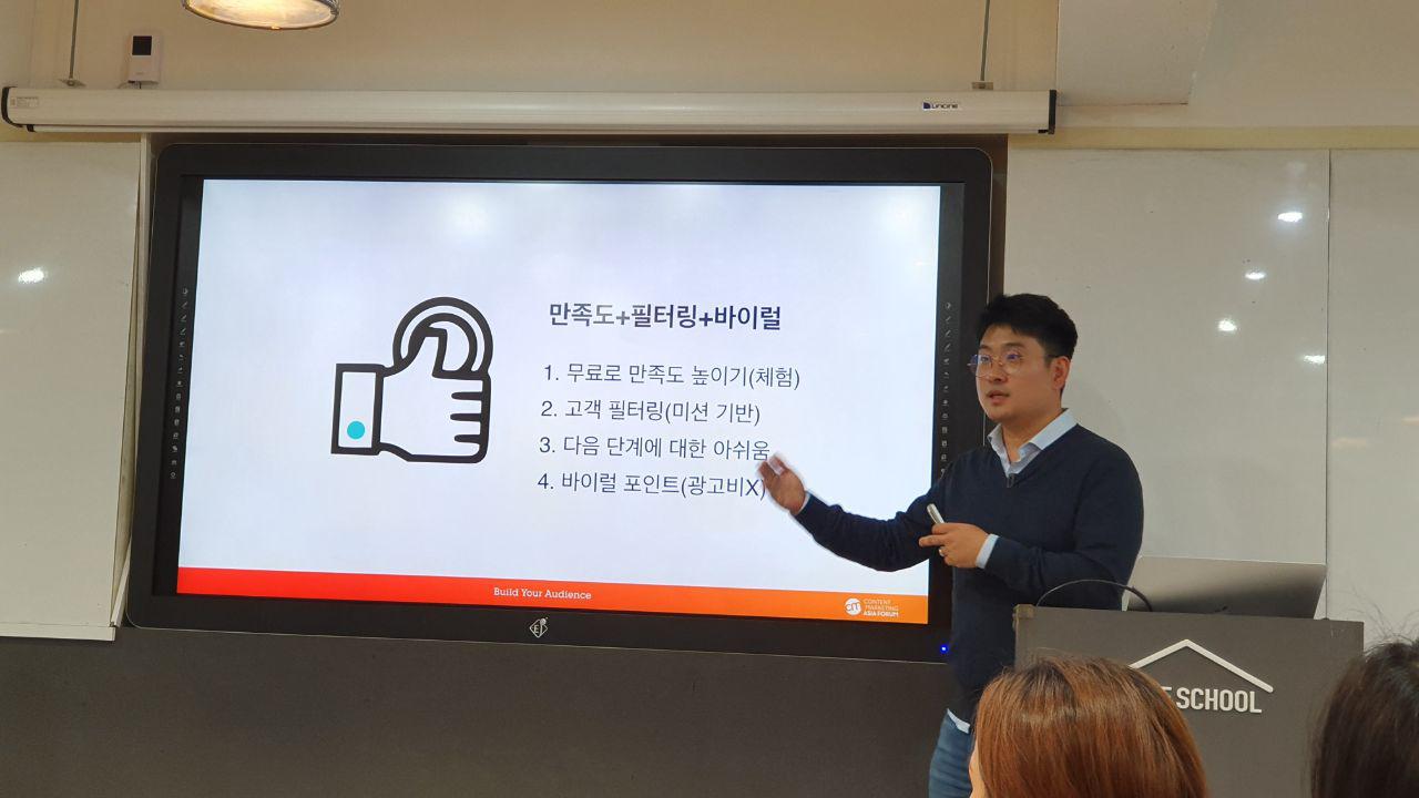 자본없이 창업해서 어떻게 팔 수 있는지를 연구하기 시작하셨대요. 처음에는 주1회 오프라인 세미나를 통해서 온라인 컨텐츠를 파는 부분을 시작하셨는데, 오프라인에서는 구매하셨던 분들이 기대와 달랐던 컨텐츠에 의해 양날의 검이 되셨고 이를 해결하기위한 혁신을 찾으셨다고 합니다. 온라인 컨텐츠를 보고 충분히 고객이 생각하고 구매할 수 있는 시스템을 만들면 어떨까하고 말이죠. 디테일하게 단계별로 설명해주셨는데 - 고개가 절로 끄덕끄덕 하게 되더라구요.
