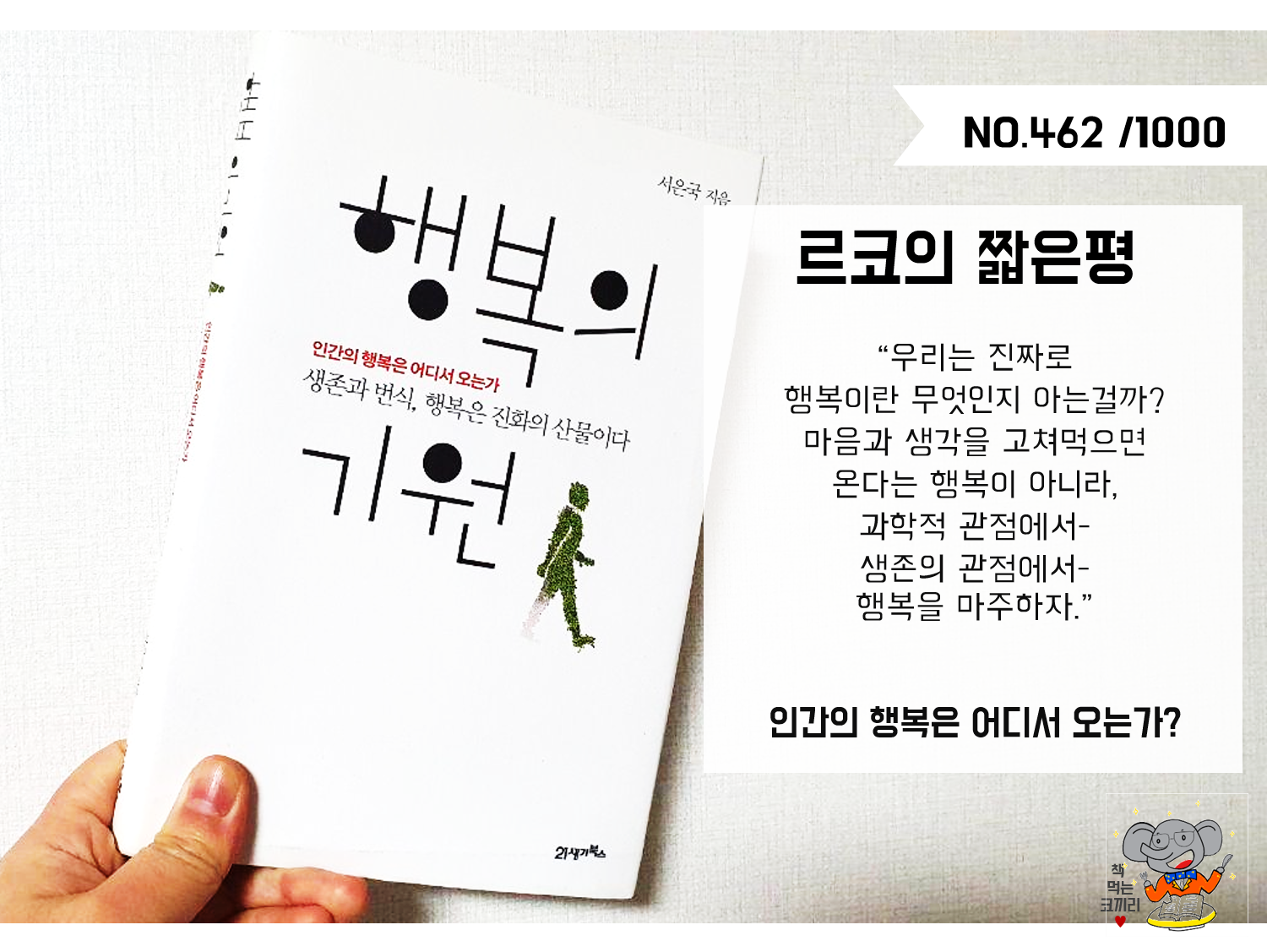 행복이 생존을 위한 도구라는 부분을 읽으면서 - 그렇다면 나는 행복을 활용해서 삶을 어디까지 바꿀 수 있을지를 고민하게 되었다. 잘 활용한다면 삶에서 많은 부분에 써먹을 수 있지 않을까? 라는 부분도 배웠다. 사회적으로 생활하기위해 남을 설득하고, 속이고, 속마을을 이해하고 ... 그게 아니라 진짜 마음을 들여다보는 시간을 자주 가져야겠다고 마음먹었다. 어쩌면 행복해야한다는 덫에 걸려서 진짜로 행복을 바라보지 못했던 게 아닌가라는 반성도 하게되는 책이였다.