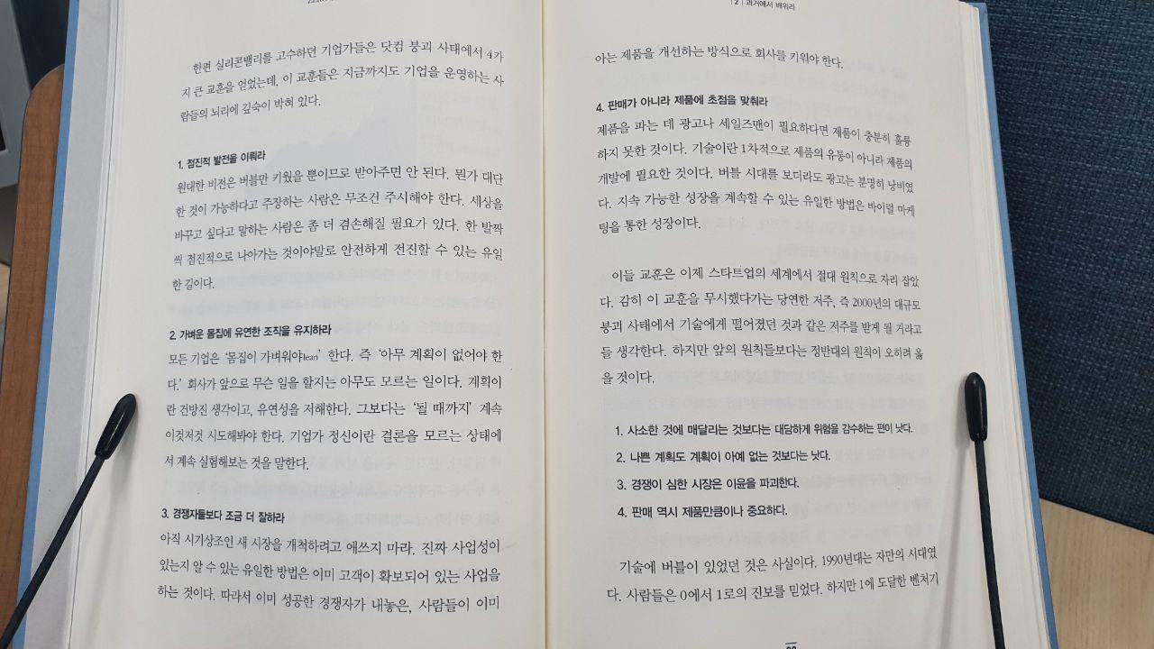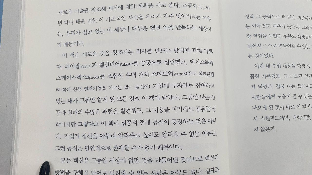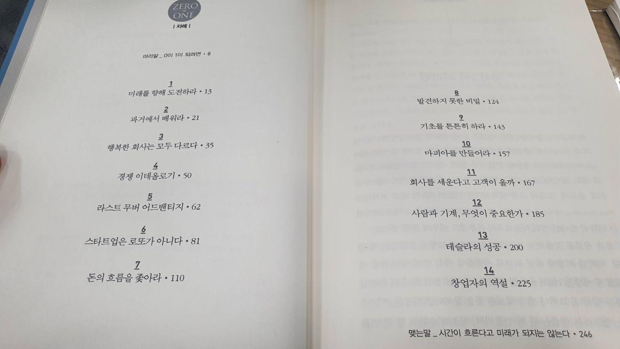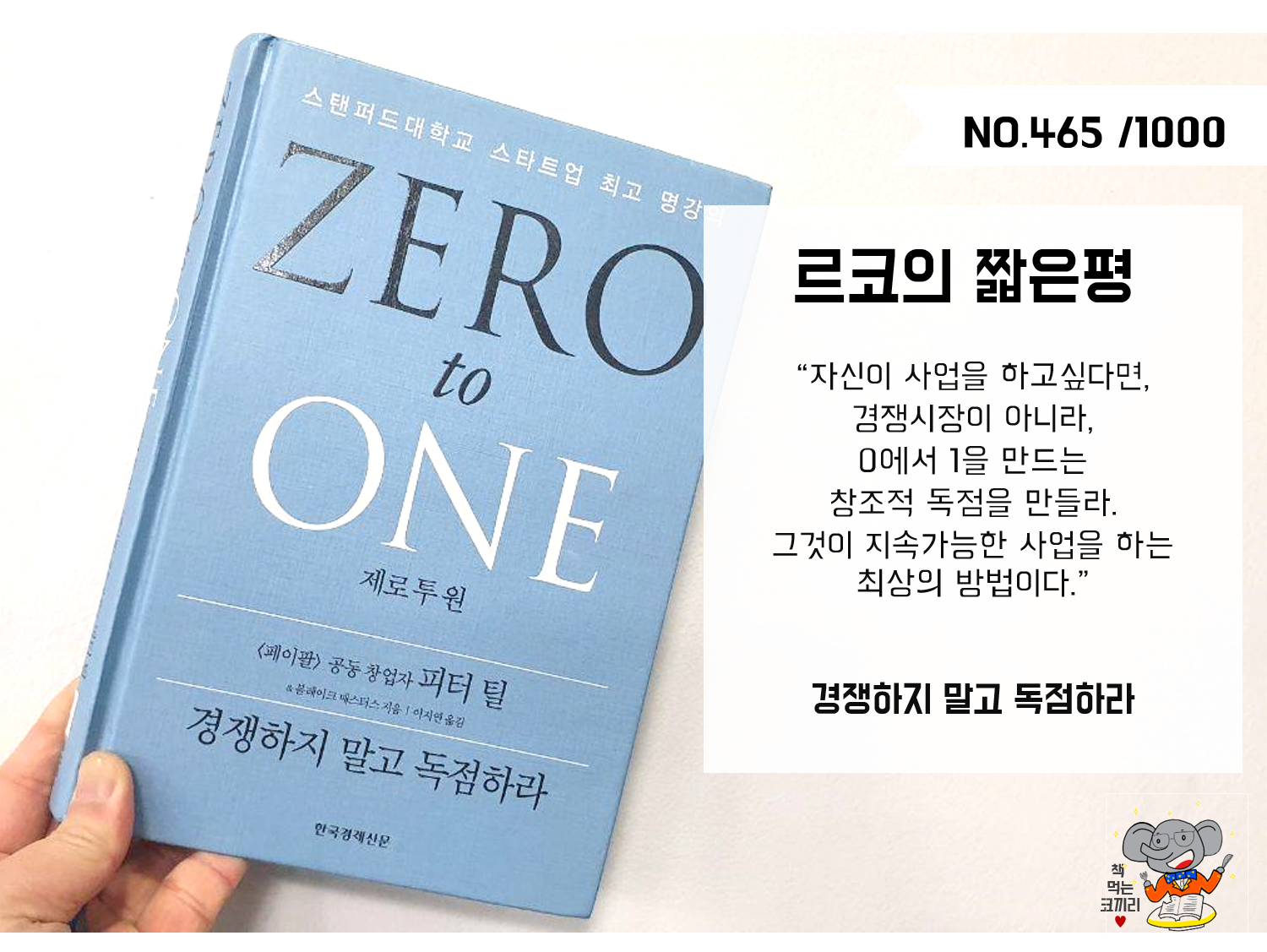 배웠다면 COPY 가 아닌 CREAT를 하라는 말이 시작부터 인상적이던 이 책은, 세상에서 N이 되지말고 1이 되라고 말한다. 오늘의 모범사례는 우리를 막다른 길로 이끌뿐이라고 말하면서 구글, 페이스북, 페이팔, 테슬라 등 ZERO에서 ONE이 된 기업들의 사례들을 말해준다. 왜 이들이 성공했고 계속 지속할 수 있는지 말이다. 당연시 되는 생각에 의문을 제기하고, 백지상태에서부터 다시 사업을 생각해야함을 일깨워준다. 사업을 꿈꾸는 사람들에게만 해당되는 내용만은 아닌 것 같았다. 읽다보니 나는 과연 내 삶을 0에서 1로 만들었을까라는 질문이 절로 생겨난다. 이루지 않고 떠들고만 있는 건 아닐까? 진정으로 남들과 다른 사람은 다수에게 반대하는 사람이 아니라 스스로 생각하는 사람이라는 말에 반박할 수가 없었다. 나의 삶에서도 경쟁이 아닌 독점이 하고싶어지는 내용이 담겨있어서 배움을 많이 얻었다.