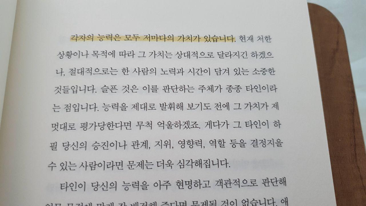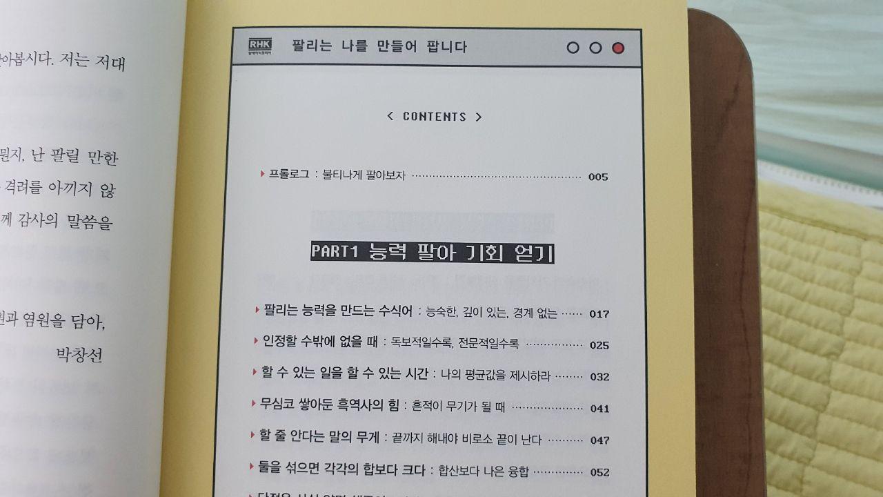 그리고 자기 영업의 기술이라고 말했지만, 이를 내가 마주할 업무 속에서 만날 다양한 형태의 수많은 고객(상사, 동료, 거래처… 등)들에 대해 내가 놓치지 말아야할 부분들을 말한다. 거래에서 중요한 건 나를 필요로 하는 사람이 누군지, 그 사람은 뭘 원하는지, 나는 그것을 제대로 줄 수 있는지, 이 세가지 조건이 충족되는 지를 알아야한다고 말하며 각 조건에 해당되도록 능력을 팔아 기회를 얻는 법, 생각을 팔아 마음을 얻는 법, 상품을 팔아 돈을 버는 법이라는 세가지 파트를 다룬다. 자신이 능력이 없다고 생각하는 이에게 다시 생각해보라고 한다. 능력을 판다는 것은 추상적이여 보이지만 실제 과정은 단순하다고 말한다.'당신이 원하는 것과 내가 가진 것의 거래'라고 말한다. 그러면서 능력이 없다고 생각하는 경우에 대해서도 차근차근 짚어준다. 어쩌면 책이라서 생략할 수도 있는 부분들을 굳이 문장으로 만들어서 보여준다. 그래서 읽어가면서 막힘이 없이 읽어갈 수 있었다.