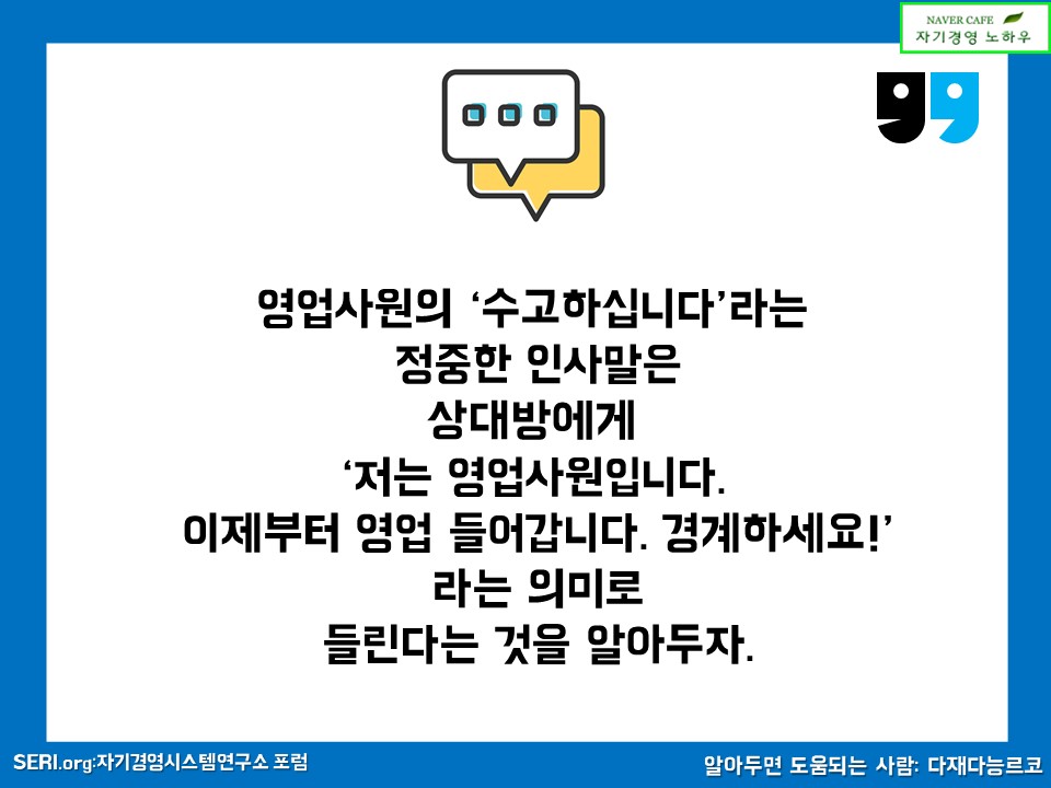 누가봐도 영업사원인 것 같은 말이 아니라,