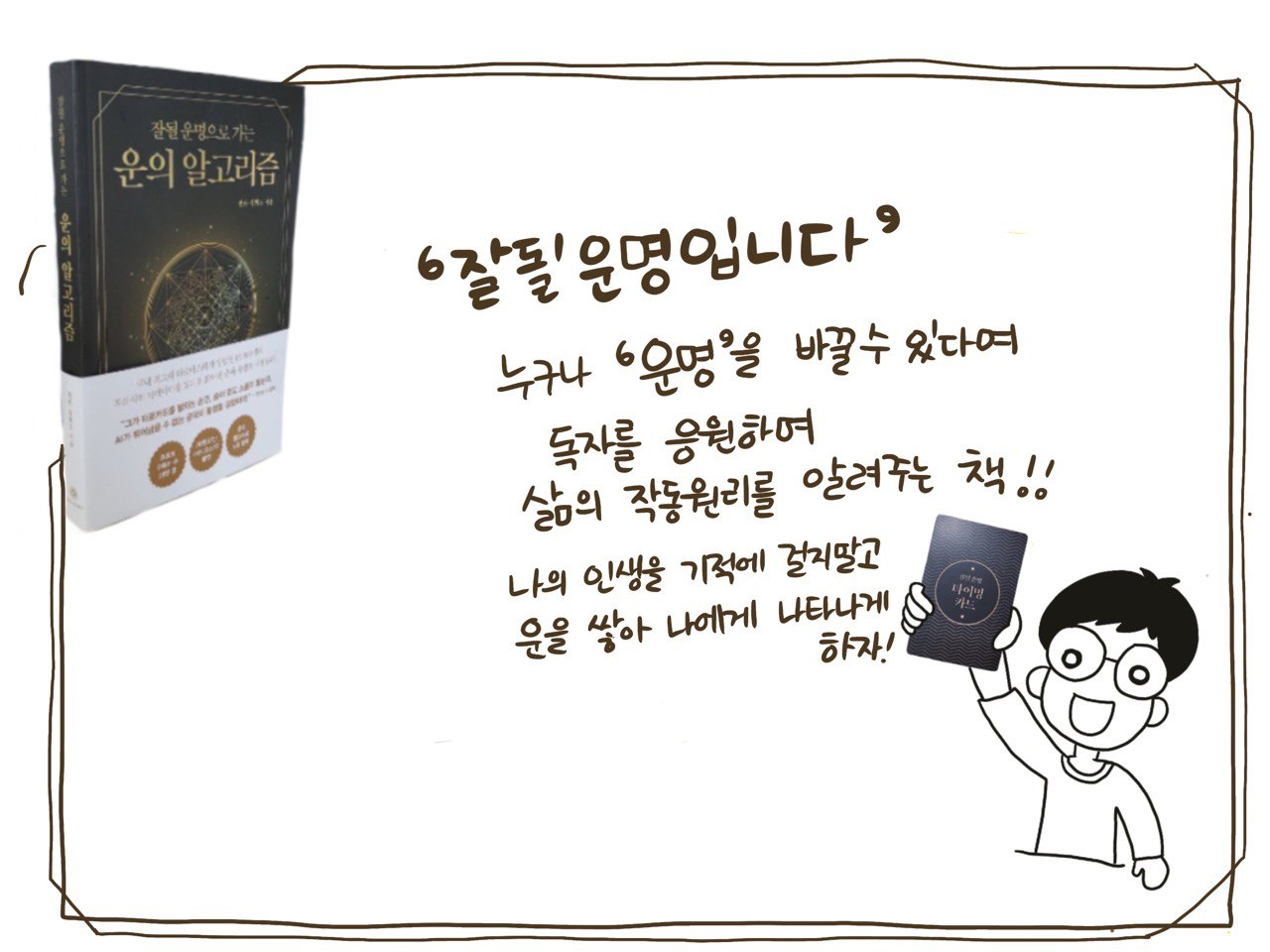 타고난 운명이라 해도 내가 어떻게 쌓아가느냐에 따라 달라질수 있음과 불운의 순간에도 얻을 게 있음을 이야기를 해준다. 그래서 더 생각하게 된다. 나는 무엇을 쌓아서 나의 운의 알고리즘이 작동하게 할지 말이다.