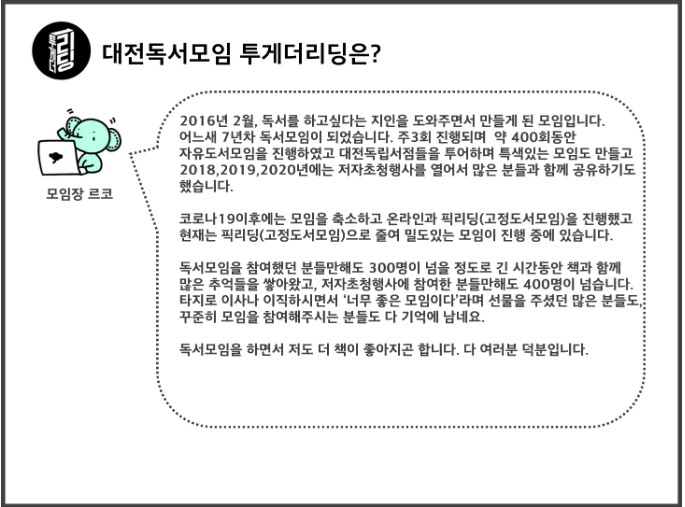 대전에서 2016년부터 운영되어온 7년차 독서모임
