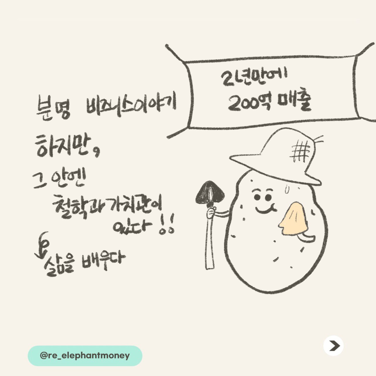 06. 이 책은 2년만에 200억 매출을 낸 '춘천 감자빵'의 시작과 과정을 담고 있습니다. 하나의 비즈니스이야기인 셈이죠. 하지만 그 안에는 이를 이룰 수 있게 된 철학과 가치관이 담겨 삶을 배울 수 있었습니다.
