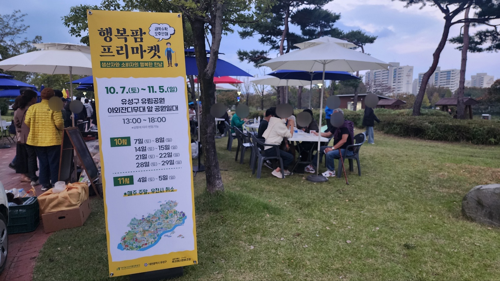 이번 전시기간동안 10월 7일부터 11월 5일까지 매주 주말 (우천시 취소) 마다 행복팜 프리마켓이 유림공원에서 1시부터 6시까지 진행된다고 하니 참고해보시면 좋겠더라구요. 즉석에서 먹을 수 있는 전이나 음료도 팔고 반찬거리도 팔고 카드결제도 되니 참고하셔서 방문하시면 즐기기가 더 좋을 실 것 같더라구요.