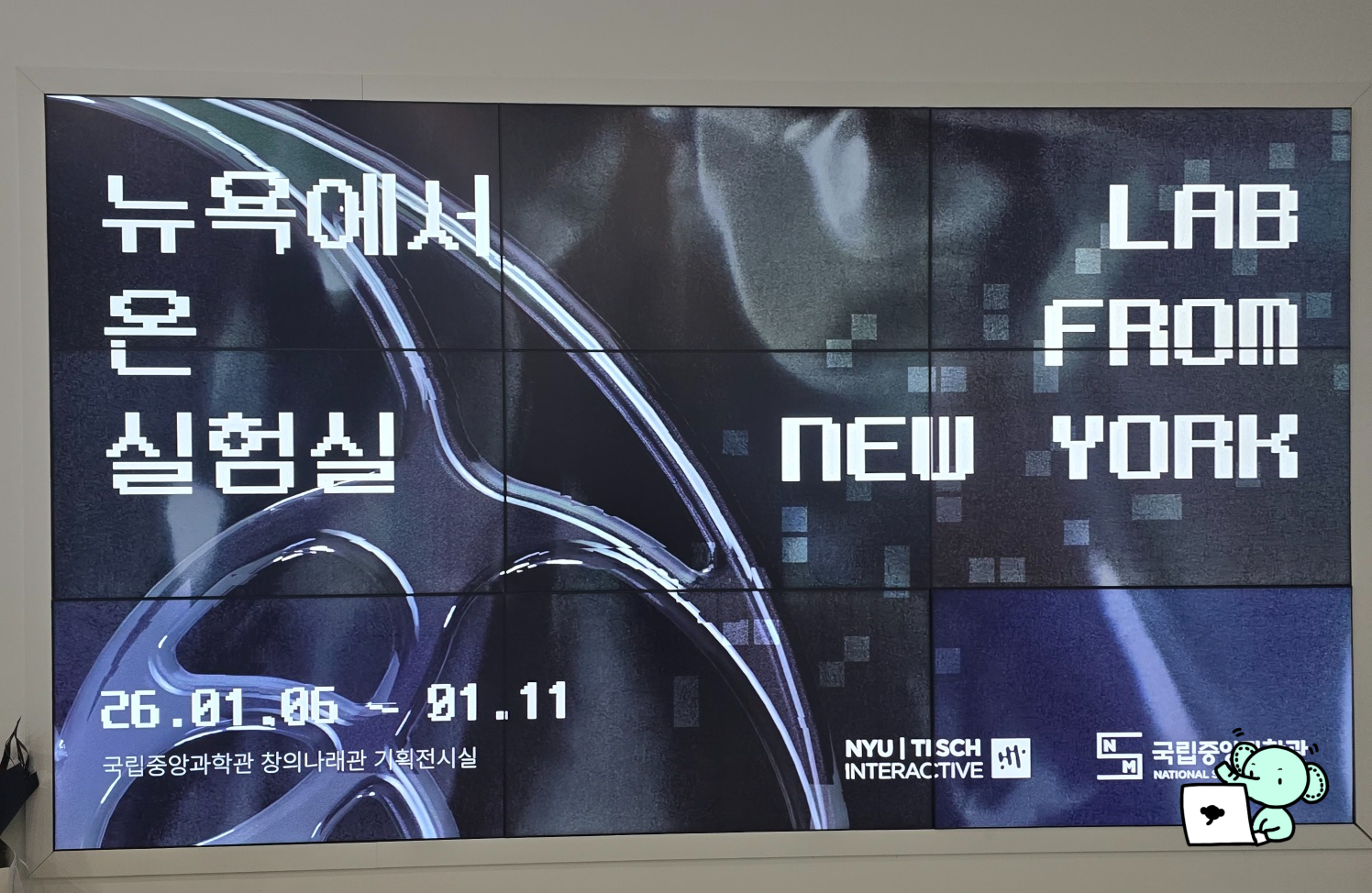 국립중앙과학관에서 뉴욕을 기반으로 활동 중인 작가 7인의 융합 예술 전시로 '뉴욕에서 온 실험실'을 열었길래 주말에 다녀왔습니다. 뉴욕대 타쉬예술대학 인터랙티브 아트 프로그램 출신 작가 7명이 선보이는 첨단기술을 매개로 현대사회를 분석한 결과물을 소개하는 전시였습니다.