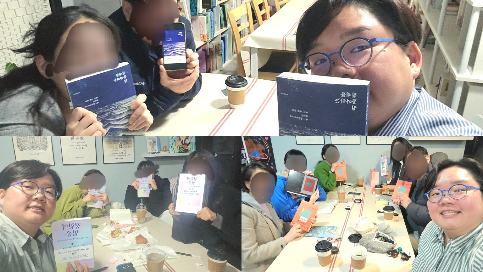 투게더리딩 '26년 1분기(1월~3월) 고정도서모임 참가 신청 받습니다. 1월 28일 (수) 2월 25일 (수) 3월 25일 (수) 모임 시간 : 7:30 ~ 9:30PM 모임 장소 : 책방채움(유성구 반석동 656-6) / 상황에 따라 ZOOM 네이