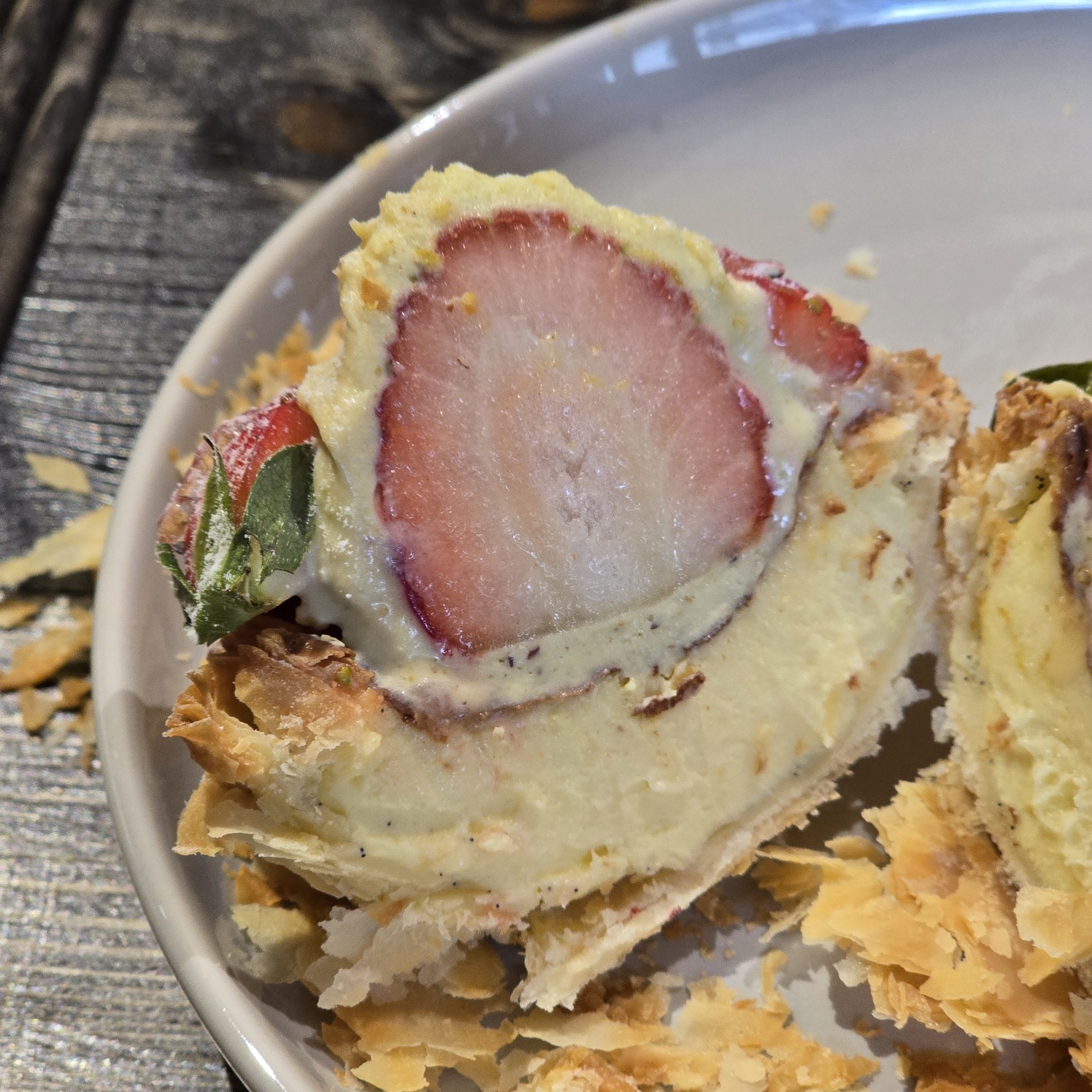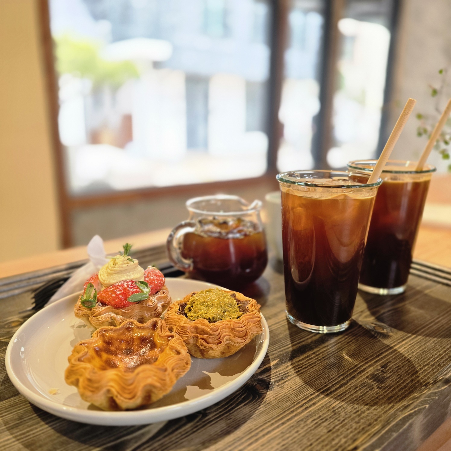 두바이 쫀득 쿠키말고 두바이 에그타르트 드셔보세요! 진짜 맛있더라구요. 딸기피스타치오 타르트는 단면이 진짜 어마어마했어요. 에그타르트가 진짜 시트가 바삭바삭 그자체 거의 엄마손파이수준이야요. 그래서 식감이 아주 좋았답니다.