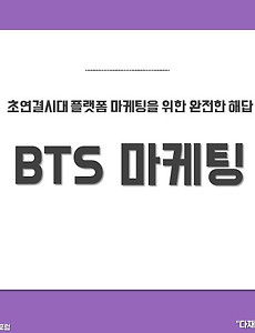 박형준 - BTS 마케팅│세계를 움직이는 글로벌 영향력을 가진 BTS(방탄소년단)의 비밀 ⓐ 책소개얼마전 어른들의 생각을 바꾸고, 청년층에게는 또다른 새로움이 된 아이돌 그룹이 하나 있다. 바로 UN에 초대되어 "우리 스스로 어떻게 삶을 바꿀 수 있을까, 우리 스스로 사랑하는 것이다, 여러분의 목소리를 내달라, 여러분의 스토리를 이야기해달라"며 자신의 이야기를 통해서 목소리를 냈던 BTS(방탄소년단)이 바로 그 주인공이다. 단순히 엔터산업시장에 만들어진 아이돌이 아니라 끊임없이 그 나이대 청년들의 이야기를 노래에 담으며 남녀노소할 것 없이 점점 더 많은 글로벌 팬들을 만들어가고 있는 그들의 이야기는 접할 수록 신기하다. 과연 우리나라에서 3대 기획사에 들어가지 않았던 그들이 어떻게 국가대표 아이돌이 되었을까? 이 책은 바로 그 부분을 경영학적 관점으로 하나하나 이야기를 하는 책이다. BTS(.. 2018. 11. 12. [5분 독서]박형준 - BTS마케팅│BTS는 어떻게 국가대표 아이돌이 되었는가? 다재다능르코의 "5분 독서" 북칼럼 박형준 / BTS 마케팅 / 21세기북스 방탄소년단의 성공 신화에서 발견한비즈니스 인사이트 지금 5분 독서하세요 ! 2018. 10. 26. [5분 독서]케빈 알로카 - 유튜브 컬처│유튜브는 왜 항상 이기는가? 다재다능르코의 "5분 독서" 북칼럼 케빈 알로카 / 유튜브 컬처 / 스타리치북스 유튜브가 사람들을 끌어들이는놀라운 전략과 장치 지금 5분 독서하세요 ! 2018. 9. 16. [1분 독서]케빈 알로카 - 유튜브 컬처│유튜브는 왜 항상 이기는가? 케빈 알로카 / 유튜브 컬처 / 스타리치북스 유튜브 트렌드 매니저가 밝히는유튜브 바이럴 마케팅의 비밀! 2분짜리 비디오가 어떻게 세상을 바꾸고 하나의 트렌드가 되는가 ! 지금 1분 독서하세요 ! 동물원에서 인터넷의 역사가 시작되다 그 모든 골치 아프고 번거로운 일을 거쳐야 하는데도온라인 비디오 공유 네트워크는 생겨났다.이것은 사람들이 휴대와 검색이 가능하며언제든 연결될 수 있는 비디오 솔루션을 원하다는 것을 입증했다. 누구나 비디오를 업로드하고 볼 수 있는 곳이있다면 어떨까?오늘날 우리가 알고 있는 유튜브의 역사는지극히 단순한 의문에서 출발했다.유튜브는 단 1년 만에 매월 3천만 명이 찾는사이트로 성장했고, 2006년 말에는 매일 1억 개의 비디오가시청됐으며, 인터넷 비디오 시청의 58퍼센트가 유튜브에서.. 2018. 9. 14. 이전 1 다음